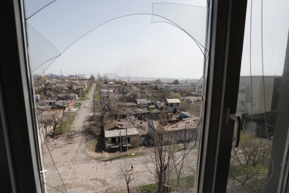 这是4月18日在马里乌波尔拍摄的被损坏的建筑。新华社发(维克托摄)
