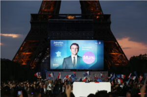 马克龙当晚在巴黎埃菲尔铁塔前发表讲话,感谢选民支持和信任。马克龙说,法国社会陷入怀疑和分裂,他希望成为“所有法国人的总统而非某个阵营的总统”。他承诺在未来5年任期内创新施政举措,更好地服务国家。