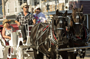 2015年9月16日,在加拿大魁北克省的圣泰特,人们乘坐马车参加牛仔节活动。新华社发(安德鲁·宋摄)
