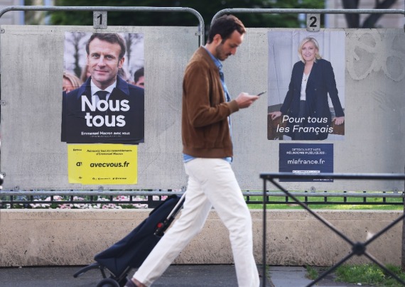 新华社北京4月25日电 法国现任总统埃马纽埃尔·马克龙在24日举行的总统选举第二轮投票中战胜竞选对手,获得连任。不过,相比5年前,马克龙与极右翼政党“国民联盟”候选人玛丽娜·勒庞的得票率差距缩小。