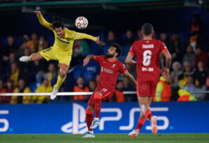 首回合利物浦在安菲尔德球场以2:0击败比利亚雷亚尔。本场比利亚雷亚尔坐镇主场,开场效率极高,第3分钟他们便首开纪录,卡普埃接队友横传,门前送出传中,迪亚小禁区边缘推射破网。第41分钟,主队再入一球,卡普埃底线附近摆脱对方防守球员后送出横传,科克林头球敲入近角,为主队将比分扩大为2:0,也将双方的总比分改写为2:2。