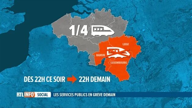 铁路交通将会受到严重影响。周一晚上 10 点开始,全国各地的铁路交通都开始出现不同程度的中断状态。在列日、那慕尔和卢森堡省,甚至不能确保“最低程度的交通服务”。