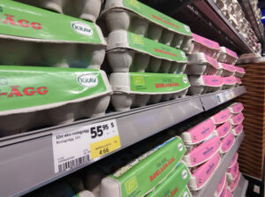 这是4月14日在瑞典斯德哥尔摩一家超市内拍摄的鸡蛋。新华社发(魏学超摄)