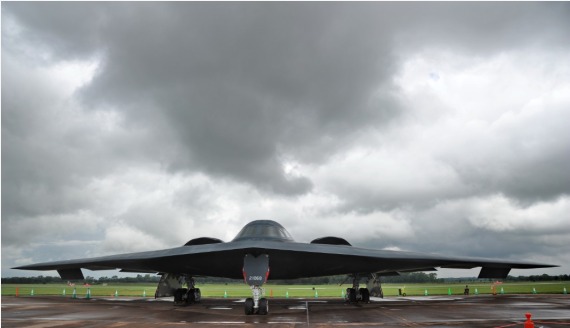 2012年7月8日,在英国费尔福德参展的美国空军B-2隐形轰炸机。新华社发(徐小丹摄)