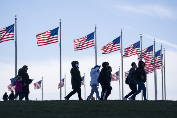 图为2022年3月29日,行人走在美国首都华盛顿的国家广场。(新华社记者刘杰摄)