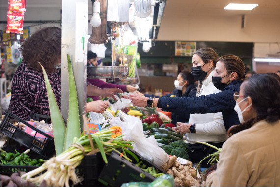 2022年3月31日,人们在西班牙马德里的商店内买菜。新华社发(古斯塔沃·巴连特摄)