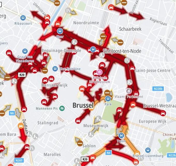 “新交通计划走五边形路线(布鲁塞尔市中心),并将车辆引导至内环。但由于Trone tunnel隧道的施工,路线才出现了交通拥堵……原本该计划希望减少污染,但结果恰恰相反,因为车辆都处于拥堵停滞状态,污染不降反升。”