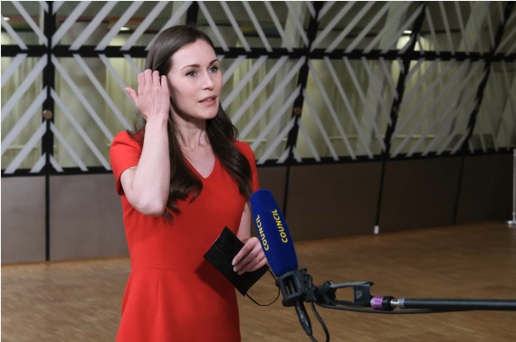 2021年6月24日,在比利时布鲁塞尔的欧盟总部,芬兰总理桑娜·马林出席欧盟夏季峰会前对媒体讲话。新华社发