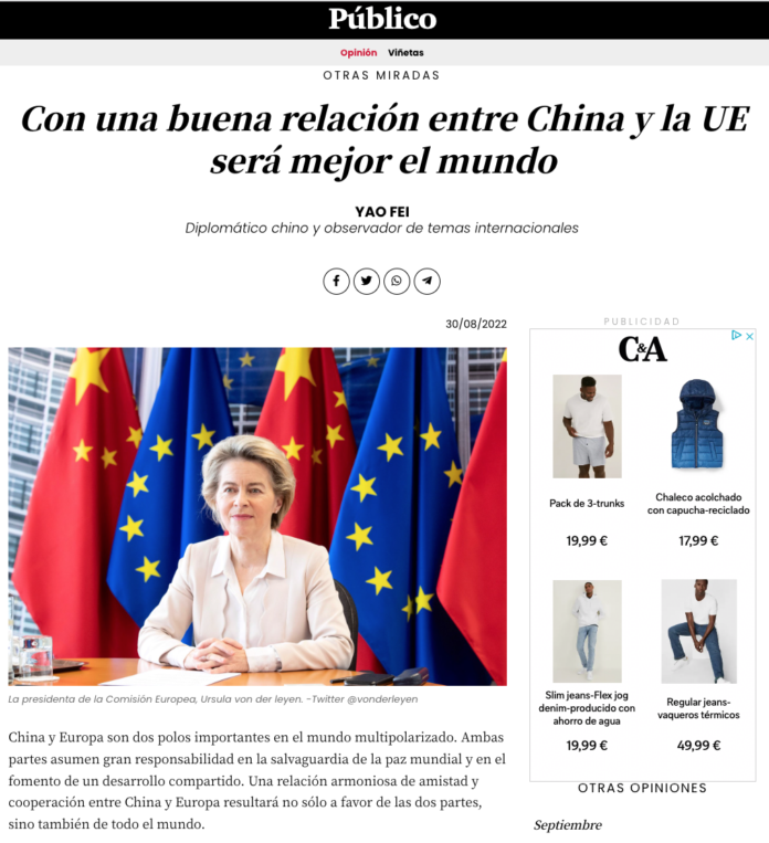 作者:姚飞 系中国外交官和国际问题观察员,本文西语版文章于2022年8月30日刊发在西班牙网络媒体“PÚBLICO”上