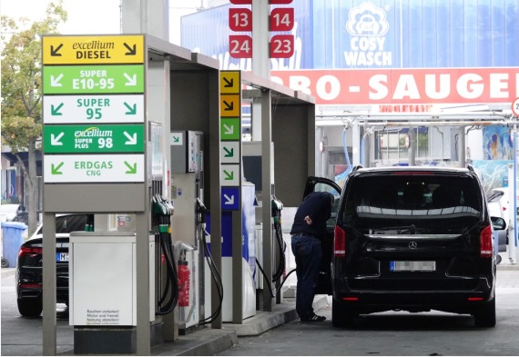 9月8日,一名男子在德国柏林的加油站给汽车加油。新华社记者任鹏飞摄