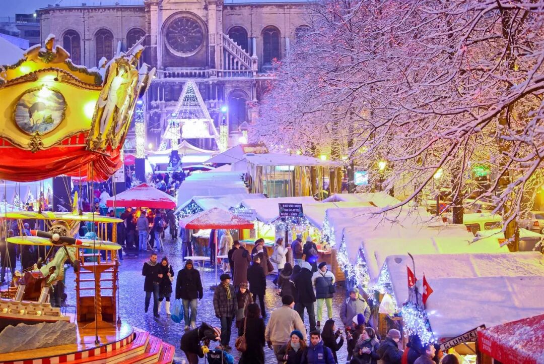 为了重现雪地度假的氛围,Monnaie广场被改造成了一个滑雪后娱乐村,有雪橇道、木屋,当然还有酒吧餐厅。你将在大都市的中心地带享受小山村的乐趣!