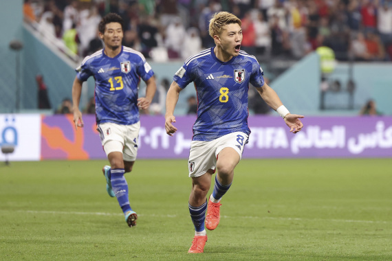 2022年12月1日夜,哈里发国际体育场,日本队2:1逆转战胜西班牙队,在卡塔尔世界杯E组以第一的身份出线。