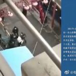 据网上流传的视频显示,身穿白衣的少年疑似与一名在某个出入口驻守的人员说话,被拉到一边,随后另外两名防疫人员殴打这名少年,少年手上拿着的东西也洒落一地。
