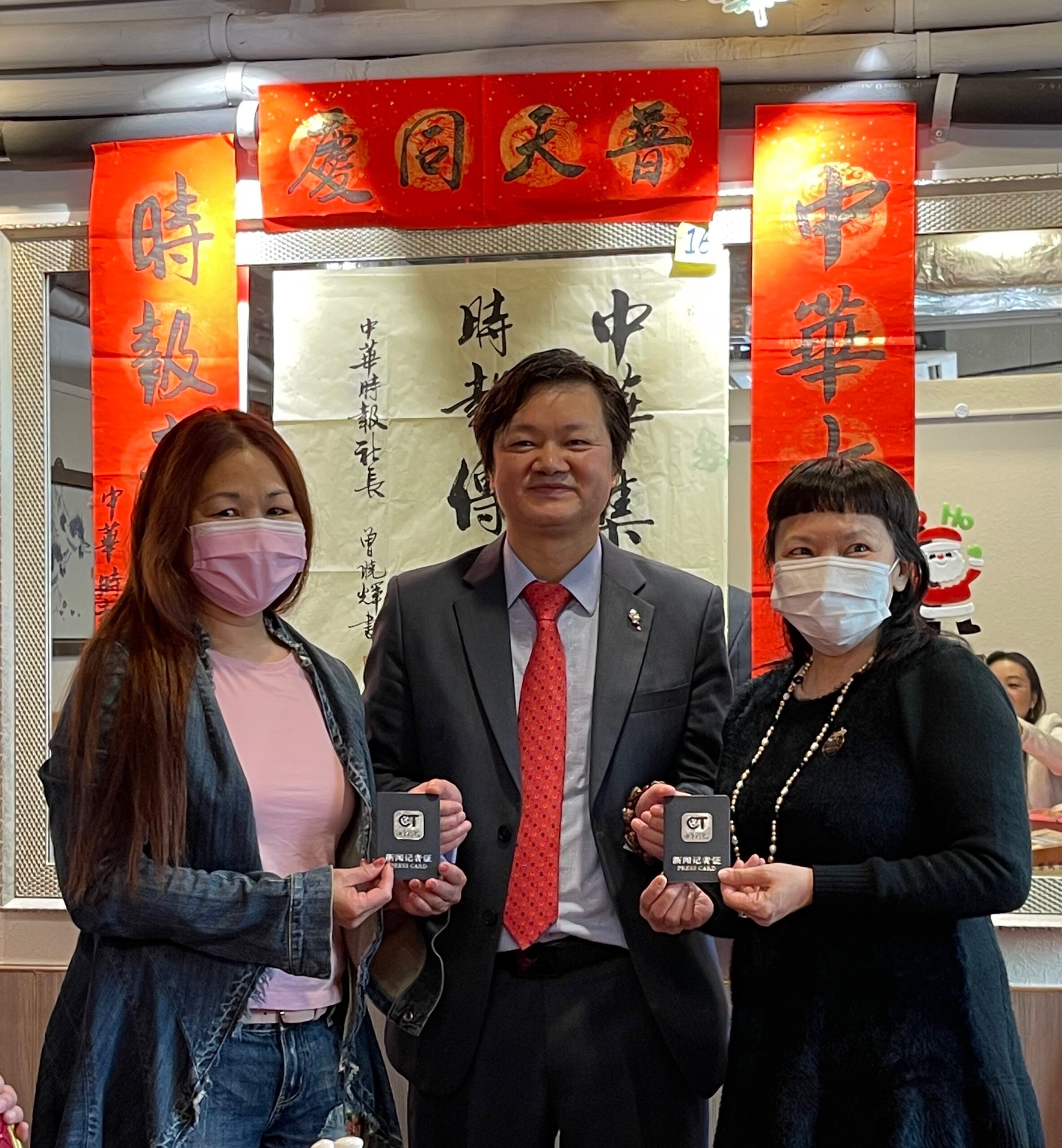 在活動上,曾曉輝代表中華時報頒記者證給盧燕芳、梁惠嫦新加入中華時報的兩位新人。曾曉輝頒榮譽證書給在港「2021年度優秀記者」。