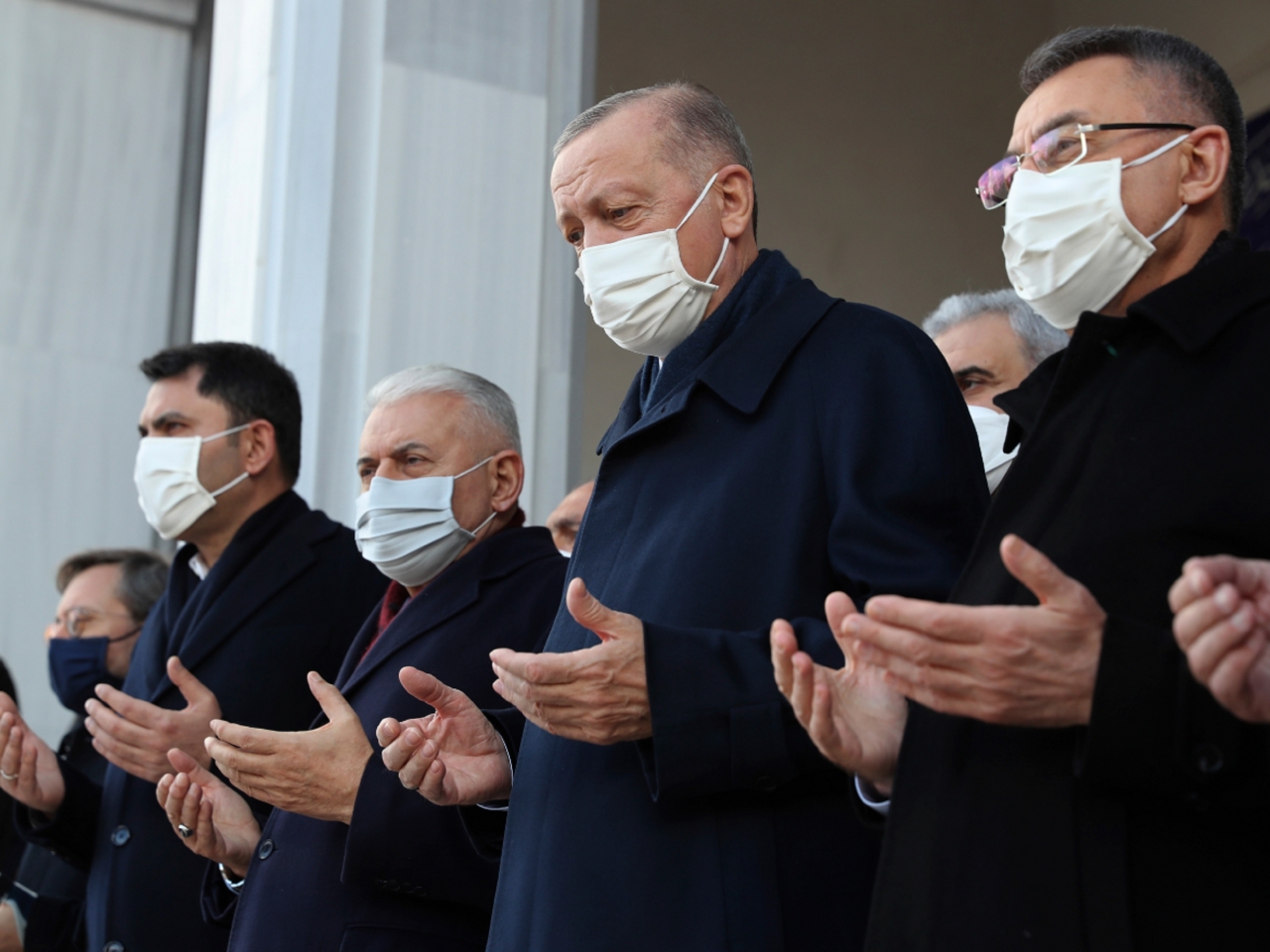 埃爾多安(右二)說自己感染了Omicron變種病毒,與妻子都有輕微症狀。(美聯社資料圖片)