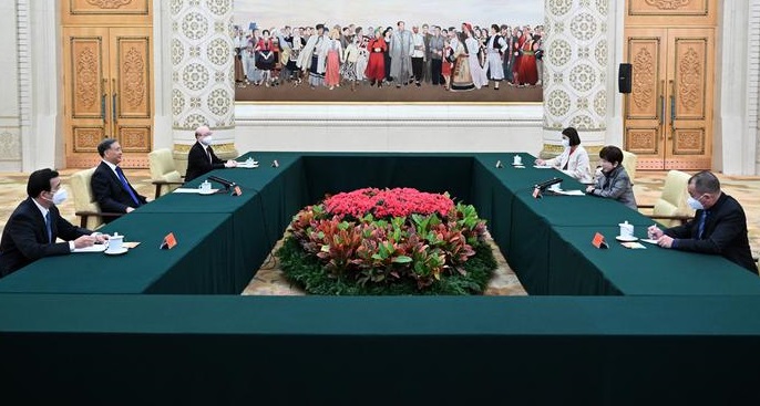 中國全國政協主席汪洋2月5日在北京會見前來出席北京冬奧會開幕式的中國國民黨前主席洪秀柱。