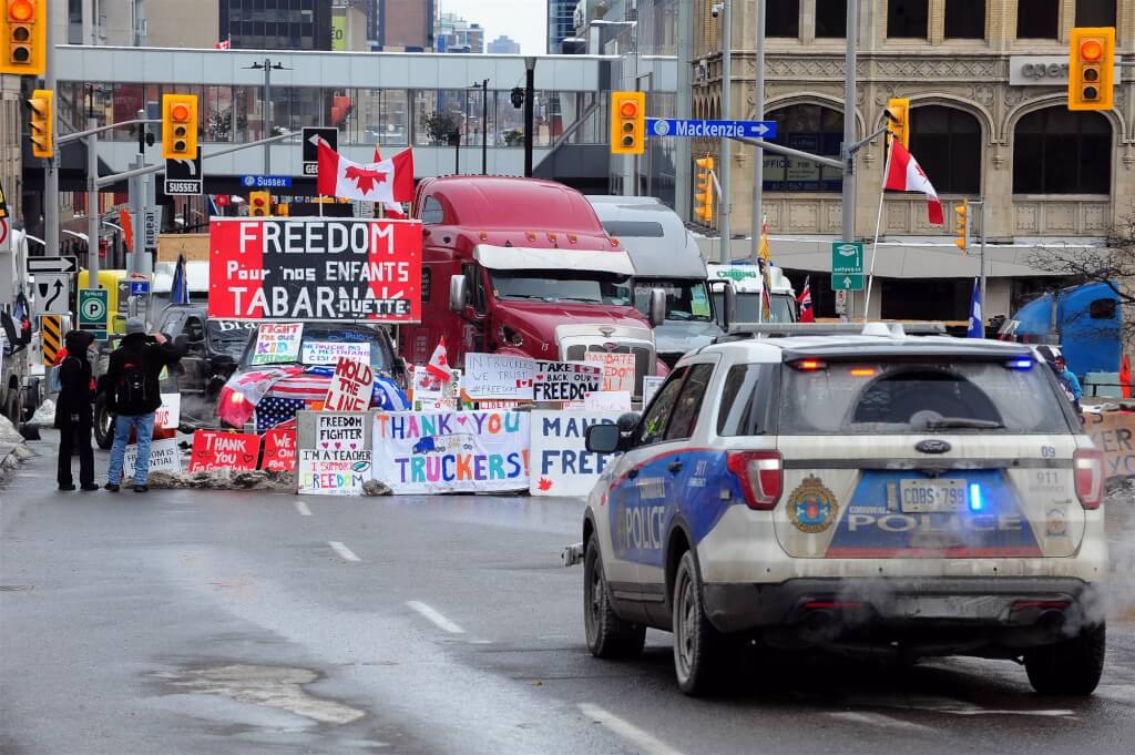 加拿大警方9日揚言逮捕響應卡車司機號召的抗議民眾,示威者不滿COVID-19防疫規範,不僅癱瘓渥太華市中心,還打亂跨境貿易,總理杜魯道痛批此舉「令人無法接受」。