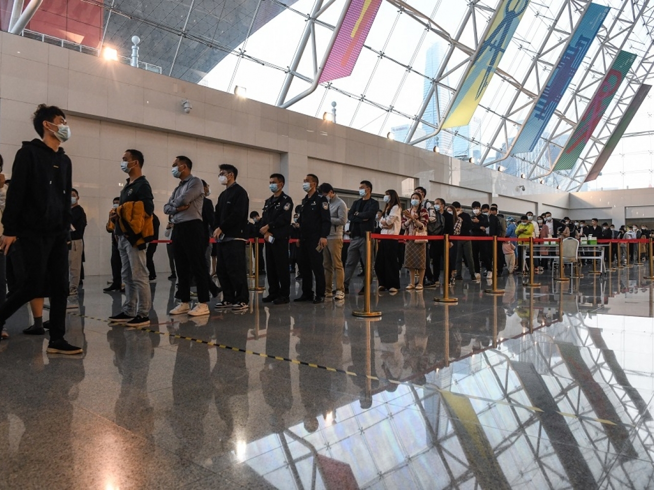深圳市民在一個檢測中心排隊輪候核酸檢測。(新華社資料圖片)