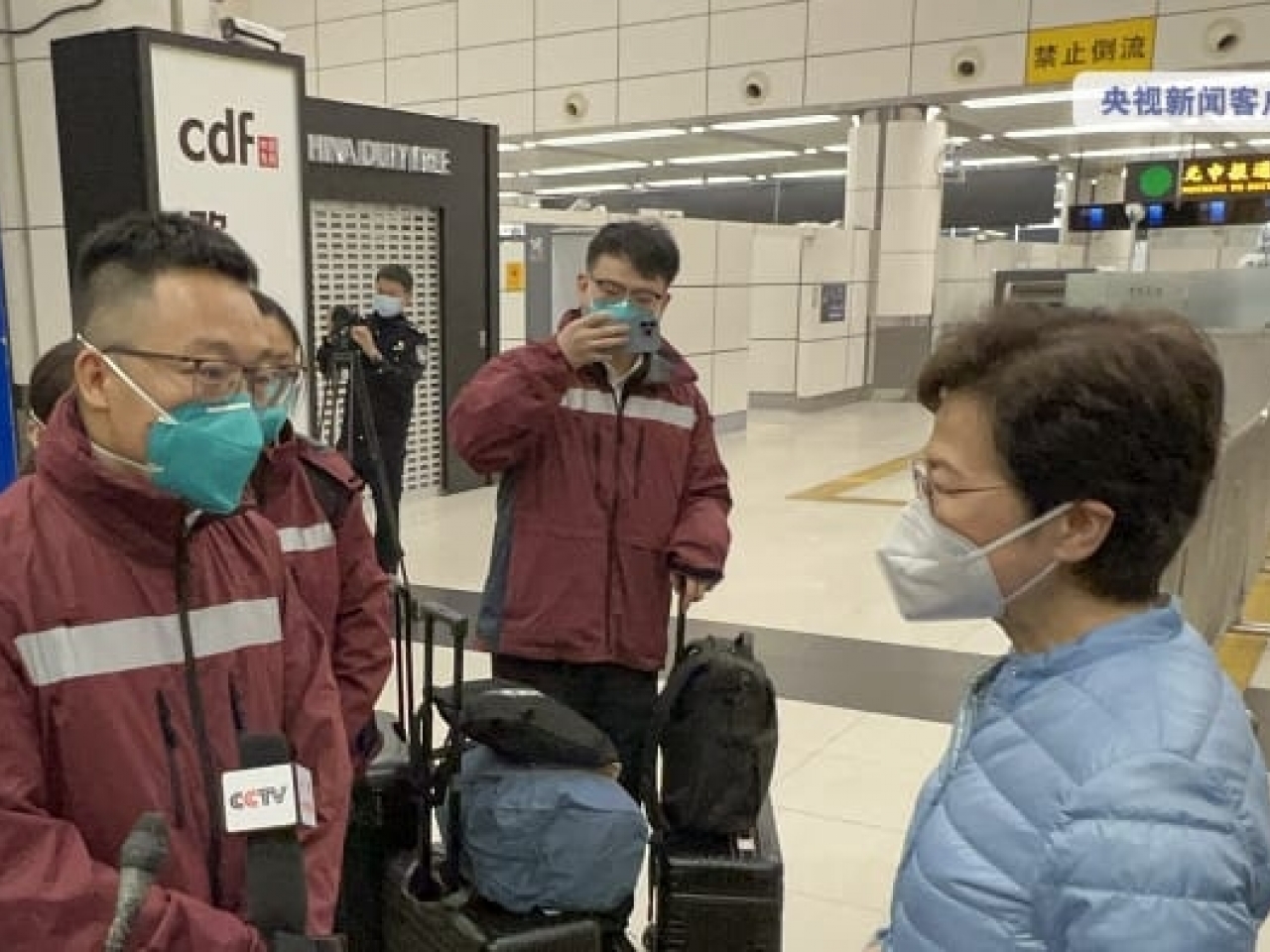 林鄭月娥到深圳灣口岸迎接內地防疫抗疫專家組