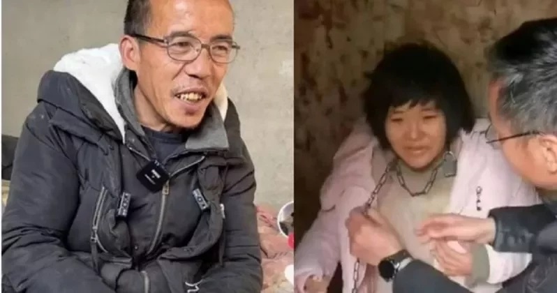 ,竟成了網路紅人;右圖為被拴著鐵鍊的妻子。圖/取材自微博.jpg)