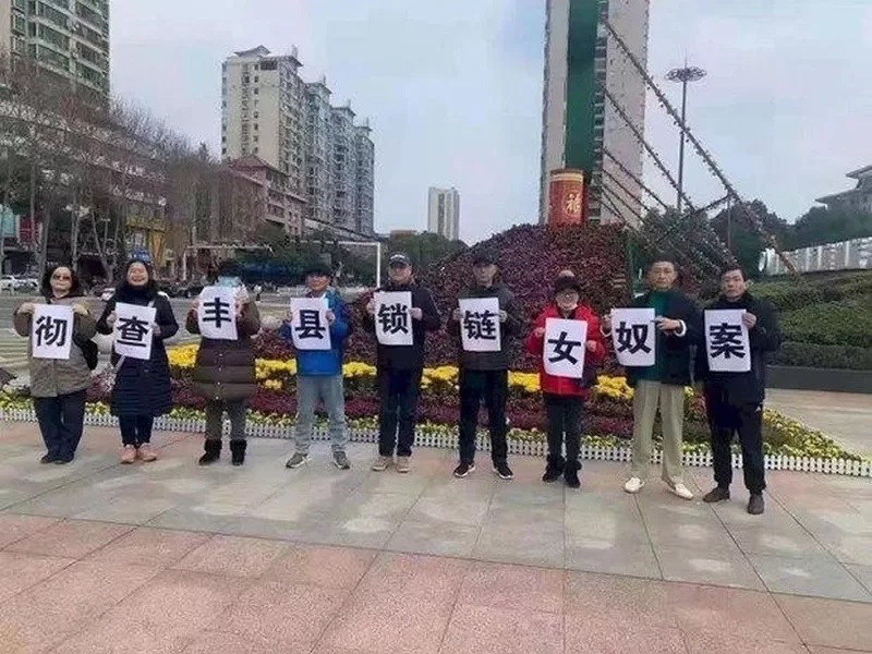 至於民間,湖南省岳陽市有9名民眾,日前在鏡頭前每人手舉白底黑字的字卡,組成「徹查豐縣鎖鏈女奴案」及「盼豐縣鎖鏈女得自由」的標語,連同拍攝者在內至少有10人,表達他們對「八孩媽」、「小花梅」的聲援,以及要求徹查全案真相的態度。