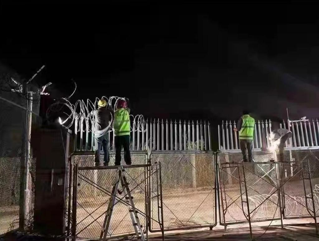有网民发现,在深圳莲塘口岸附近,有工人连夜加高、加固铁丝网。有人估计,是为防止再有人偷渡。(微博)