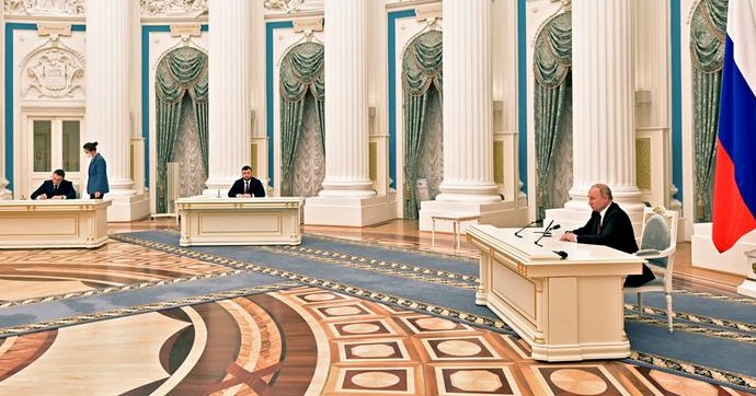 普京在中午过后不久举行的这项会议中,听取安全、国防和情报等领导官员轮流陈述应承认这2个共和国的理由,历时一个半小时,并透过电视转播。