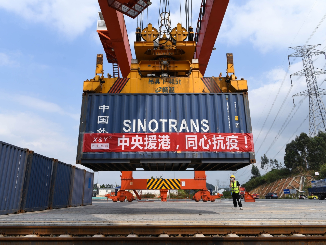 內地援港物資鐵路貨運列車昨日開通,並在深圳舉行開通運行儀式。