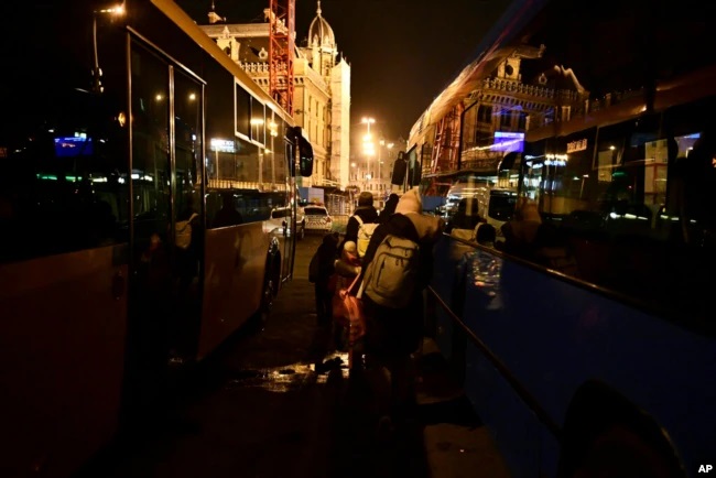 2022年3月4日,匈牙利的布達佩斯,逃離烏克蘭戰火的難民帶著行囊到達紐加蒂車站。