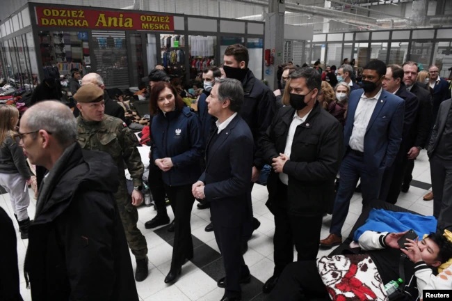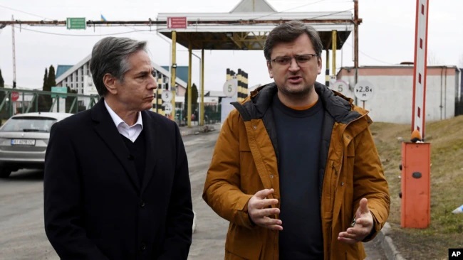 美國國務卿布林肯星期六在烏克蘭與波蘭的邊境與烏克蘭外長庫列巴舉行會談,討论西方支持烏克蘭以及孤立俄羅斯的努力。