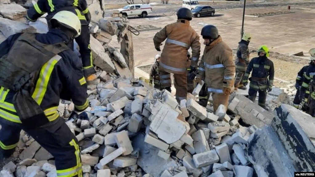 烏克蘭應急管理機構說,週五上午,東部城市哈爾科夫的一棟多層教學樓遭到砲擊,造成一人死亡,11人受傷,一人被困在廢墟中。