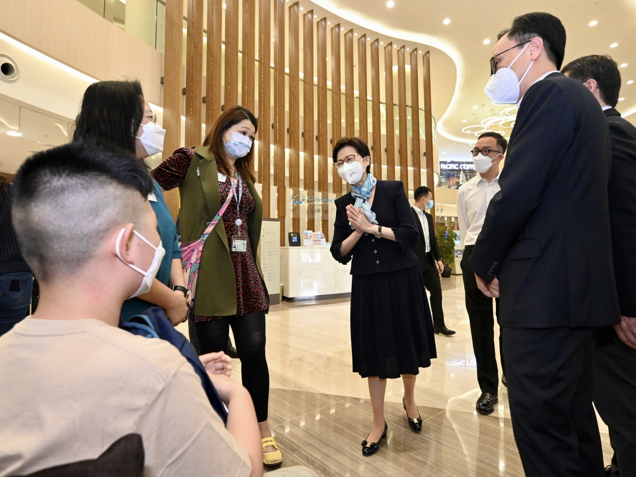 行政長官林鄭月娥到訪香港大學駐港怡醫院兒童社區疫苗接種中心,了解家長和學校安排兒童接種新冠疫苗的情況,期間聽取港大醫學院院長梁卓偉和港怡醫院執行總裁曾慶亷等介紹中心的運作情況,包括為兒童接種復必泰疫苗所需特別的疫苗稀釋程序,並與醫護和工作人員交談。