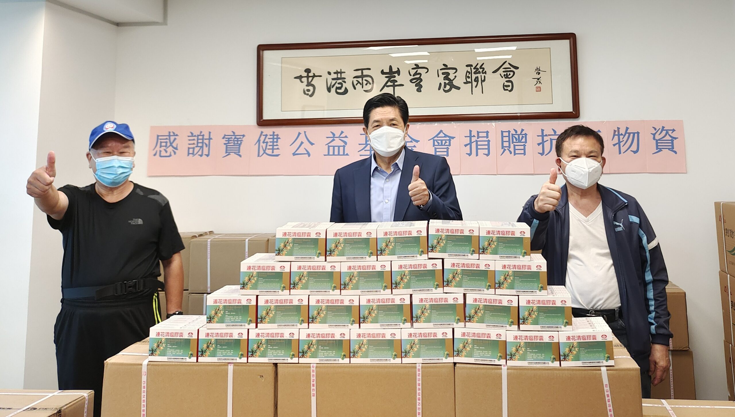 香港兩岸客家聯會派發的第三批物資,主要來自自行購買,包括各界捐贈物資,其中,燕然基金會攜手魯南制藥捐贈20箱荊防顆粒,寶健公益基金會捐贈 40箱連花清瘟膠囊。