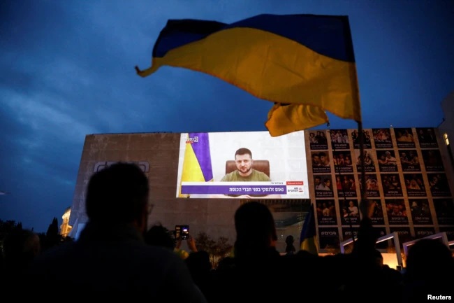 烏克蘭總統澤連斯基星期日通過視頻向以色列議會發表講話,批評以色列在烏俄戰爭斡旋上的中立立場。