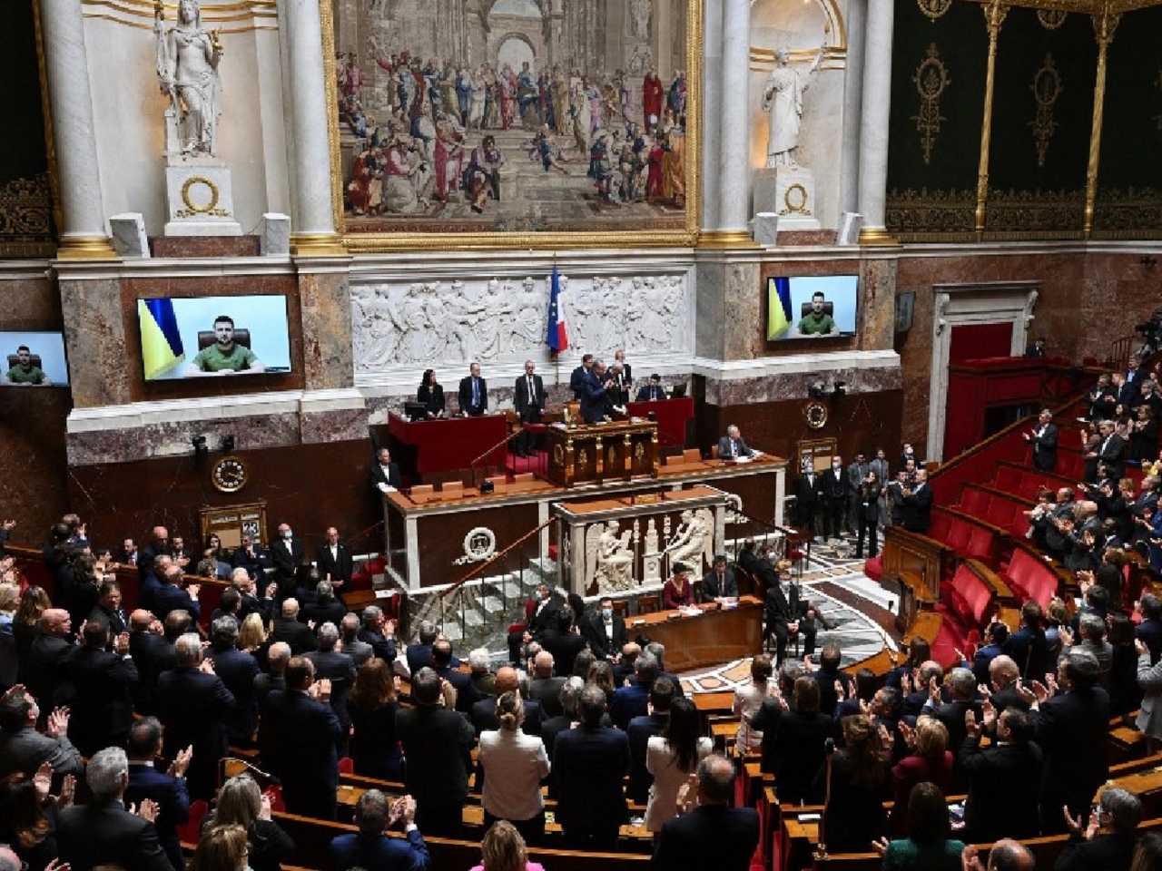 繼英國、以色列、加拿大、美國和日本後,烏克蘭總統澤連斯基(Volodymyr Zelenskiy)受邀向法國國民議會與參議院進行近13分鐘的視訊演說。