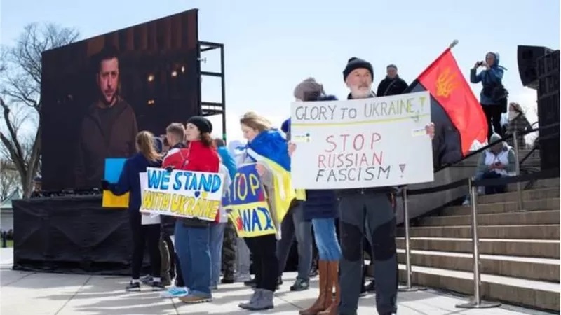 世界各地周日(3月27日)都發生了示威活動,抗議者呼籲結束烏克蘭的戰爭。