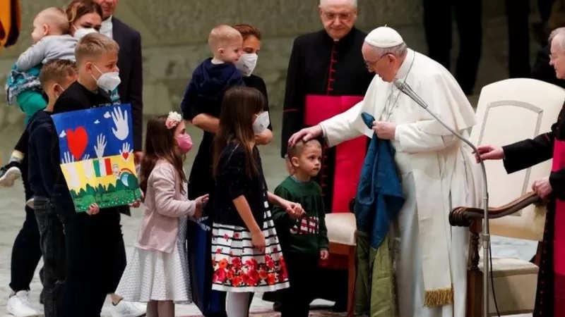 教皇方濟各在梵蒂岡每周一次的總聽證會結束時說:”最近關於烏克蘭戰爭的新聞(……)證明了新的暴行,比如布查的大屠殺,這是對平民、婦女和手無寸鐵的兒童犯下的越來越可怕的殘酷行為。他補充說:”這些流淌無辜的血的受害者向天堂呼喊,懇求結束這場戰爭”!“讓我們停止播種死亡和破壞的行為”。