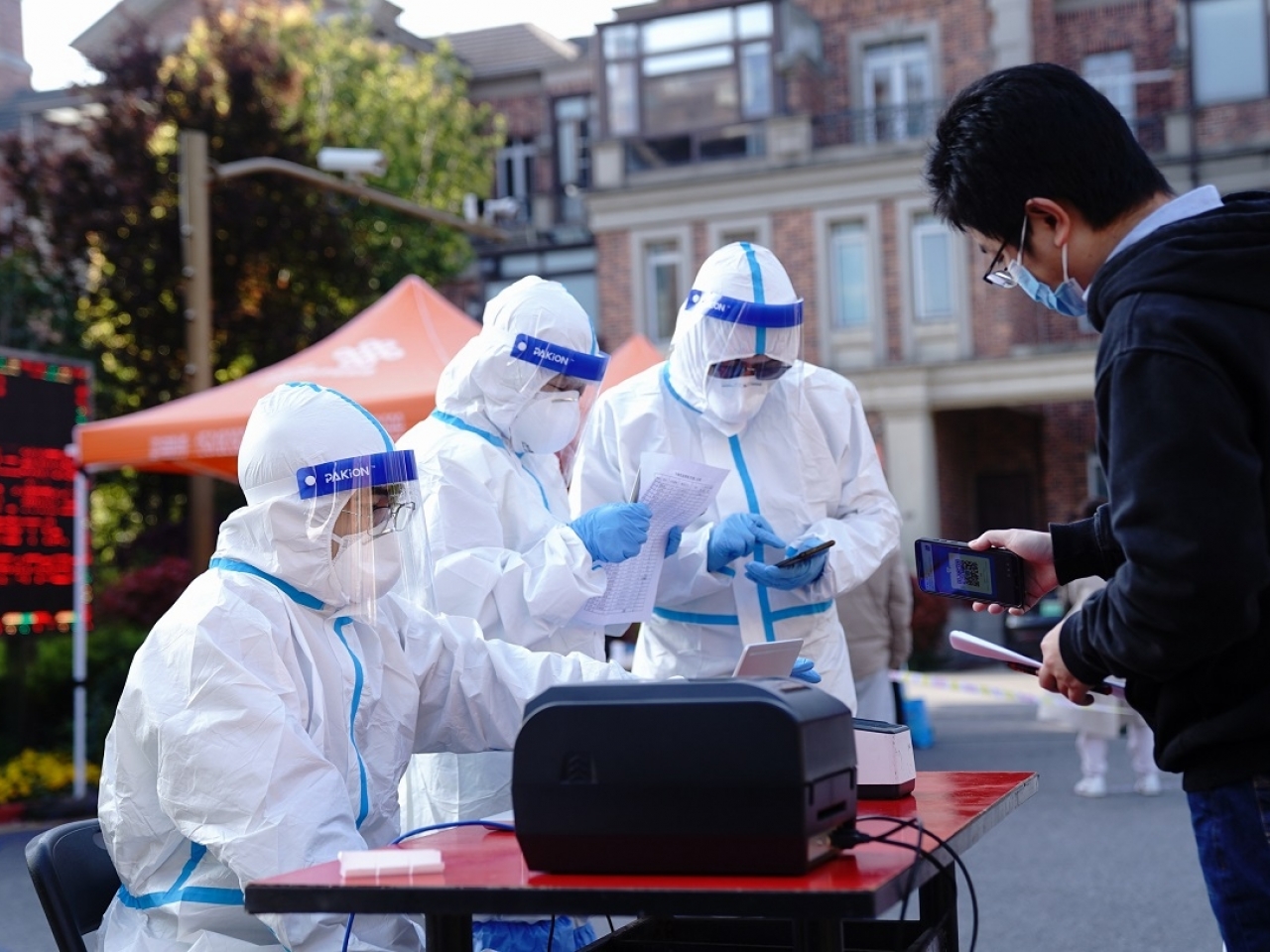 上海新增超過2萬1千宗新冠病毒本土個案,當局早前在全市進行核酸檢測。(新華社資料圖片)