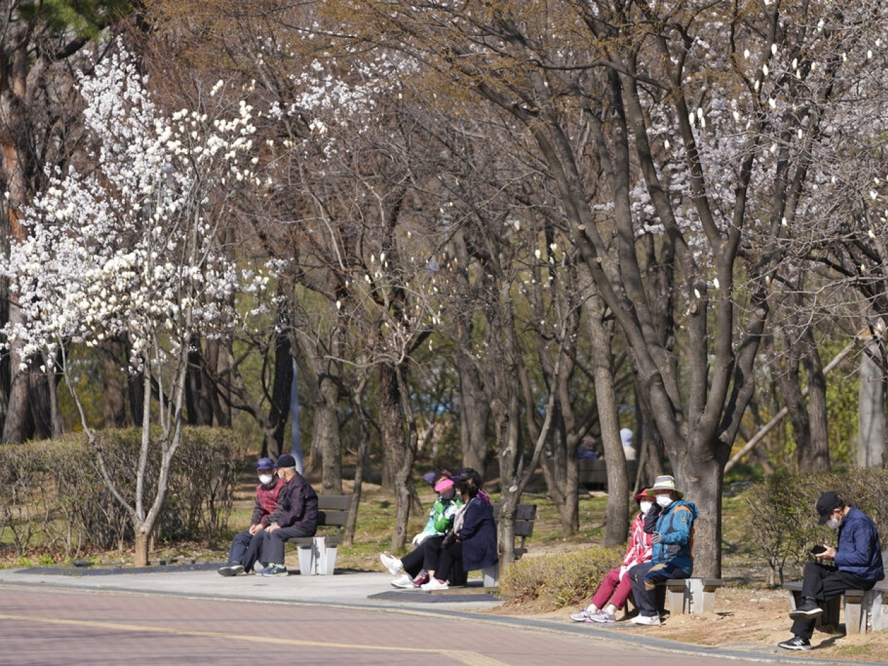 在韓國首爾一個公園,民眾都保持社交距離。(美聯社資料圖片)