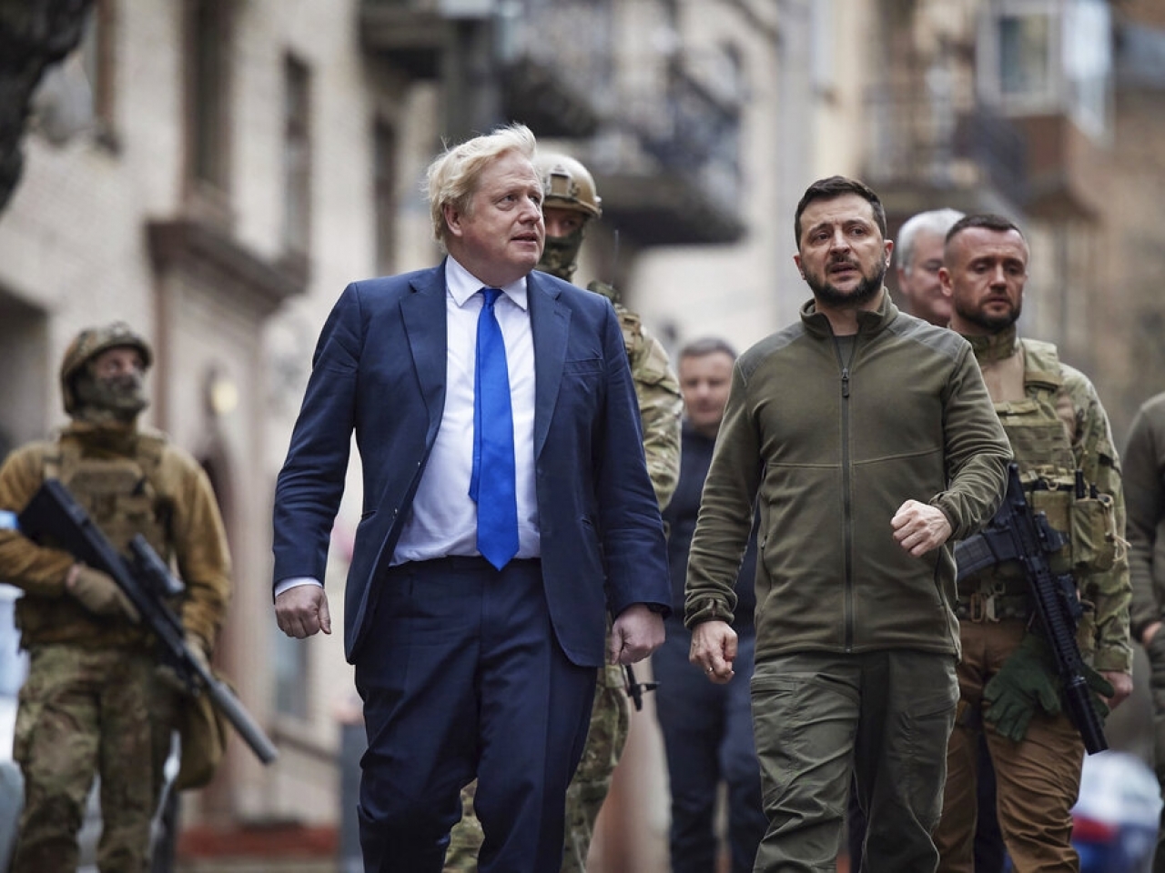 (中華新聞通訊社/中華時報4月10日訊)英國首相約翰遜突然到訪基輔,與烏克蘭總統澤連斯基一同漫步基輔街頭並會談,以表達對烏克蘭人民的支持。約翰遜表示,在烏國多座城鎮發現平民屍體,「永久玷污」了俄羅斯總統普京的名聲。