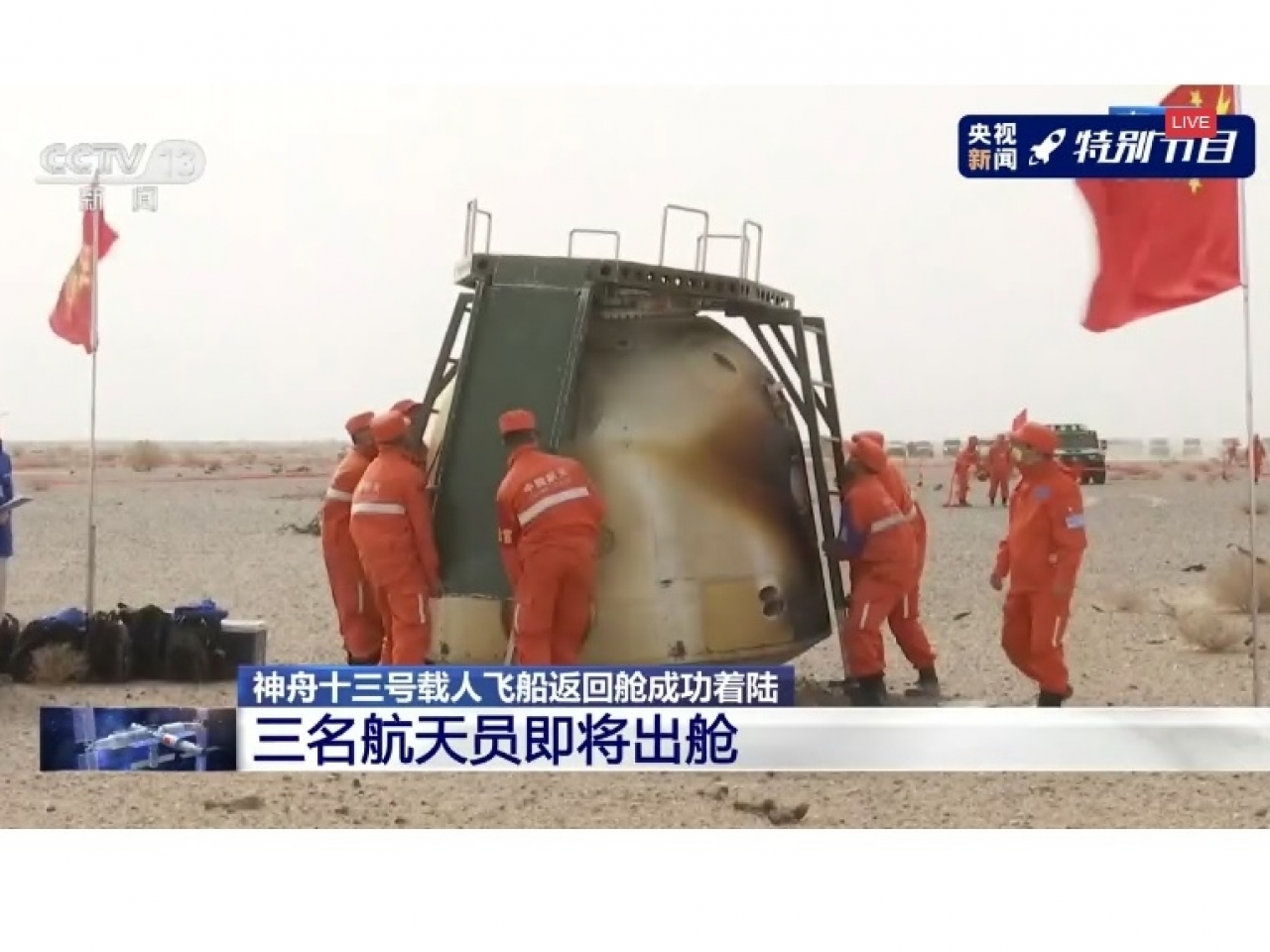神舟十三號載人飛船,返回艙已經在東風著陸場預定區域成功著陸,著陸時呈現直立狀態。搜救直升機隨後抵達,支援人員抵達返回艙位置,打開艙門檢查。3名航天員報告身體狀態良好。