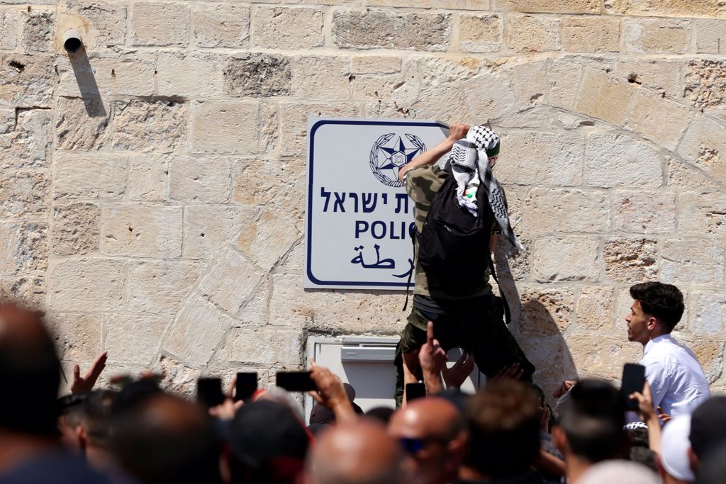 法新社報導,以色列警方表示,數十名蒙面男子進入艾格撒清真寺施放煙火,接著有群眾朝著猶太人視為最神聖的哭牆扔擲石塊。