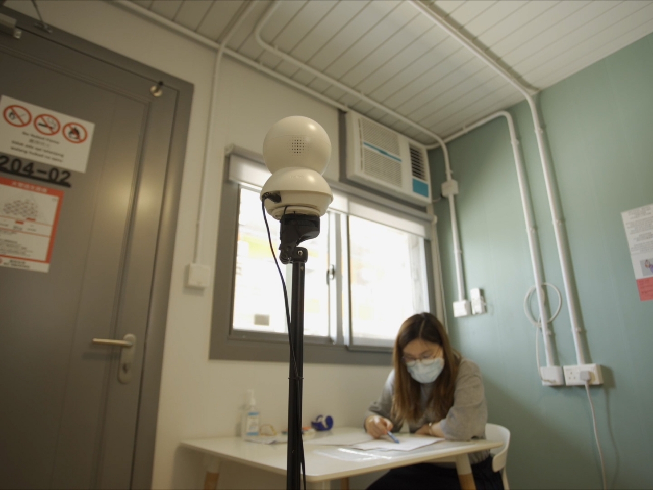 考評局表示,今日開考的中文聆聽科考試,分別有9名正檢疫及17名確診考生,於竹篙灣社區隔離設施應考。(考評局提供)