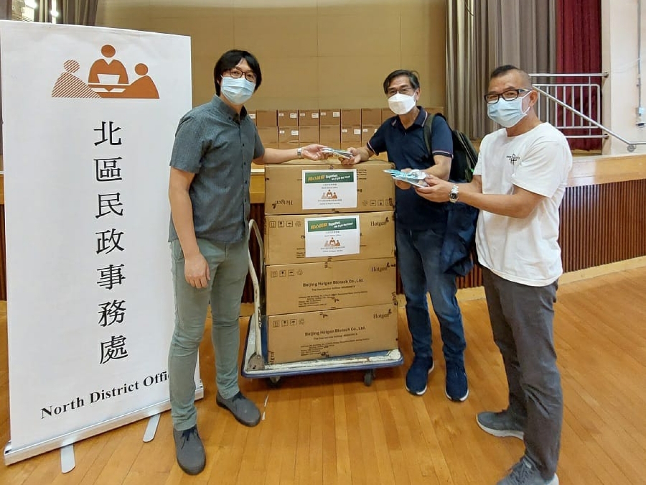 因應北區採集到對新冠病毒呈陽性的污水樣本,北區民政事務處向區內住戶及清潔員工派發共約5000套快速測試套裝。