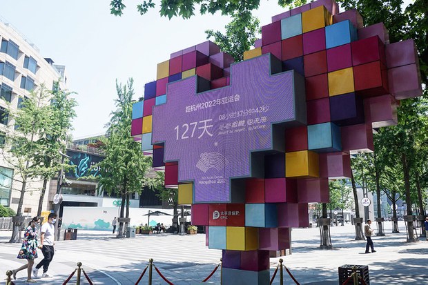 2022 年 5 月 6 日,浙江省杭州,距離 2022 年亞運會開幕倒計時 127天計時裝置。