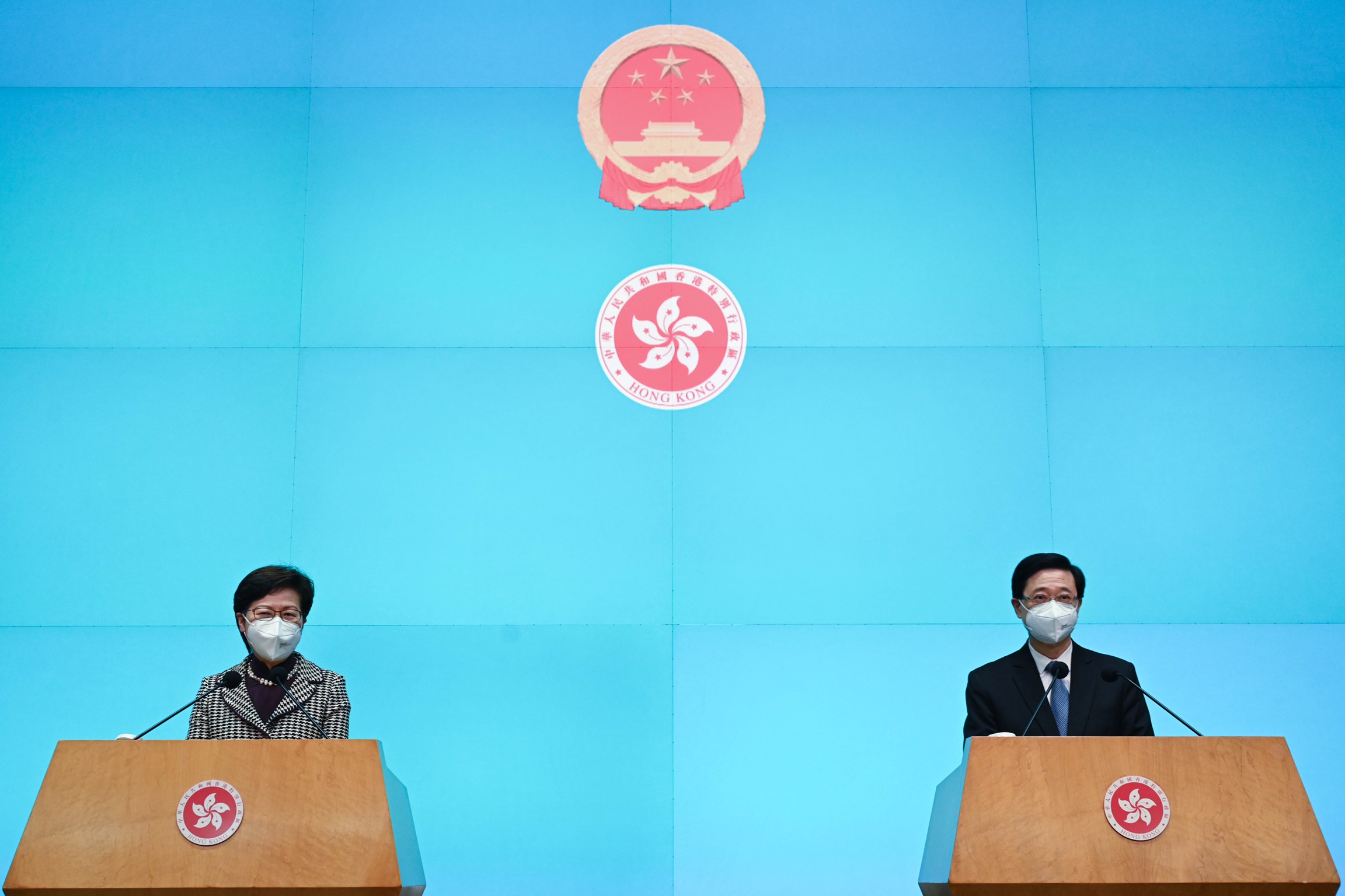 林鄭月娥與李家超在政府總部會見傳媒,兩人用中英文發言,沒有答問環節。林鄭月娥說,昨天香港成功及順利舉行第六任行政長官選舉,她感到非常高興並第一時間與李家超會面,親自恭賀對方,亦祝福對方未來一個多月內成功組班,在未來五年帶領香港再創高峰。