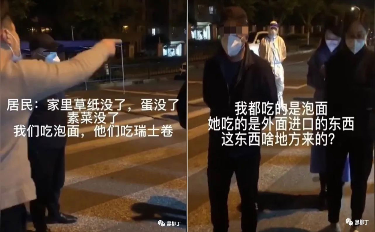 上海市徐涇鎮一居委會嚴禁居民網購,只發方便麪,但被居民拍到有人在辦公室“偷喫”蛋糕。相關視頻在網絡流傳,但拍攝者卻被處以行政拘留5日。另外,上海本週一起推進“復商復市”後,居民說,部分店鋪只准開業4個小時。