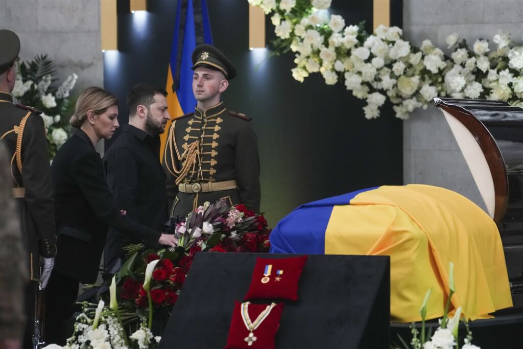 和第一夫人歐倫娜‧澤倫斯基(右3)17日連袂參加前總統克拉夫朱克的葬禮,為戰爭後兩人首度公開現身。(美聯社).jpg)