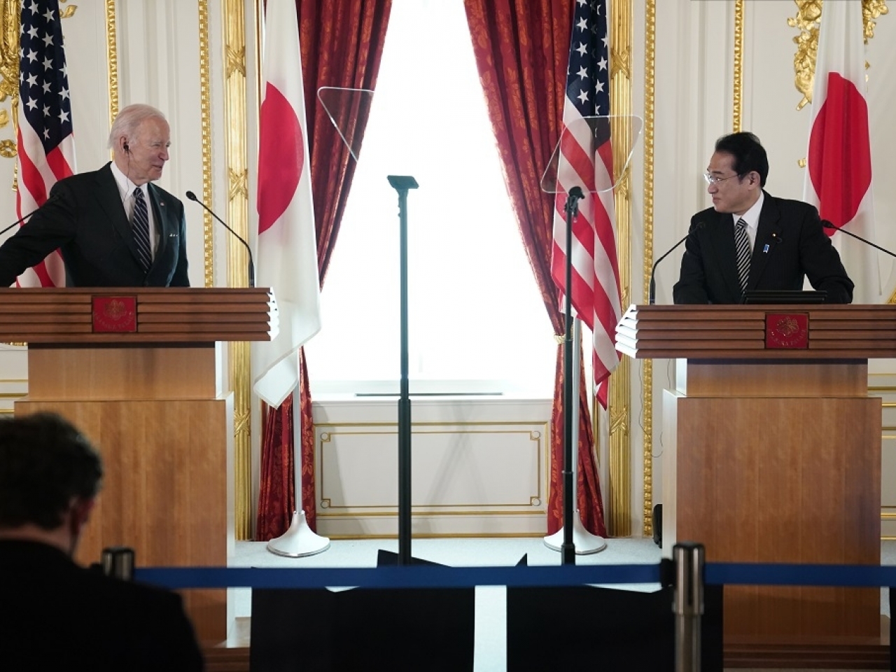 拜登與日本首相岸田文雄會談後一起會見記者。拜登表示,美國與日本,聯同其他11個國家將啟動「印太經濟框架」,又說這個框架可令美國同區內夥伴應對21世紀挑戰,確保經濟競爭力。