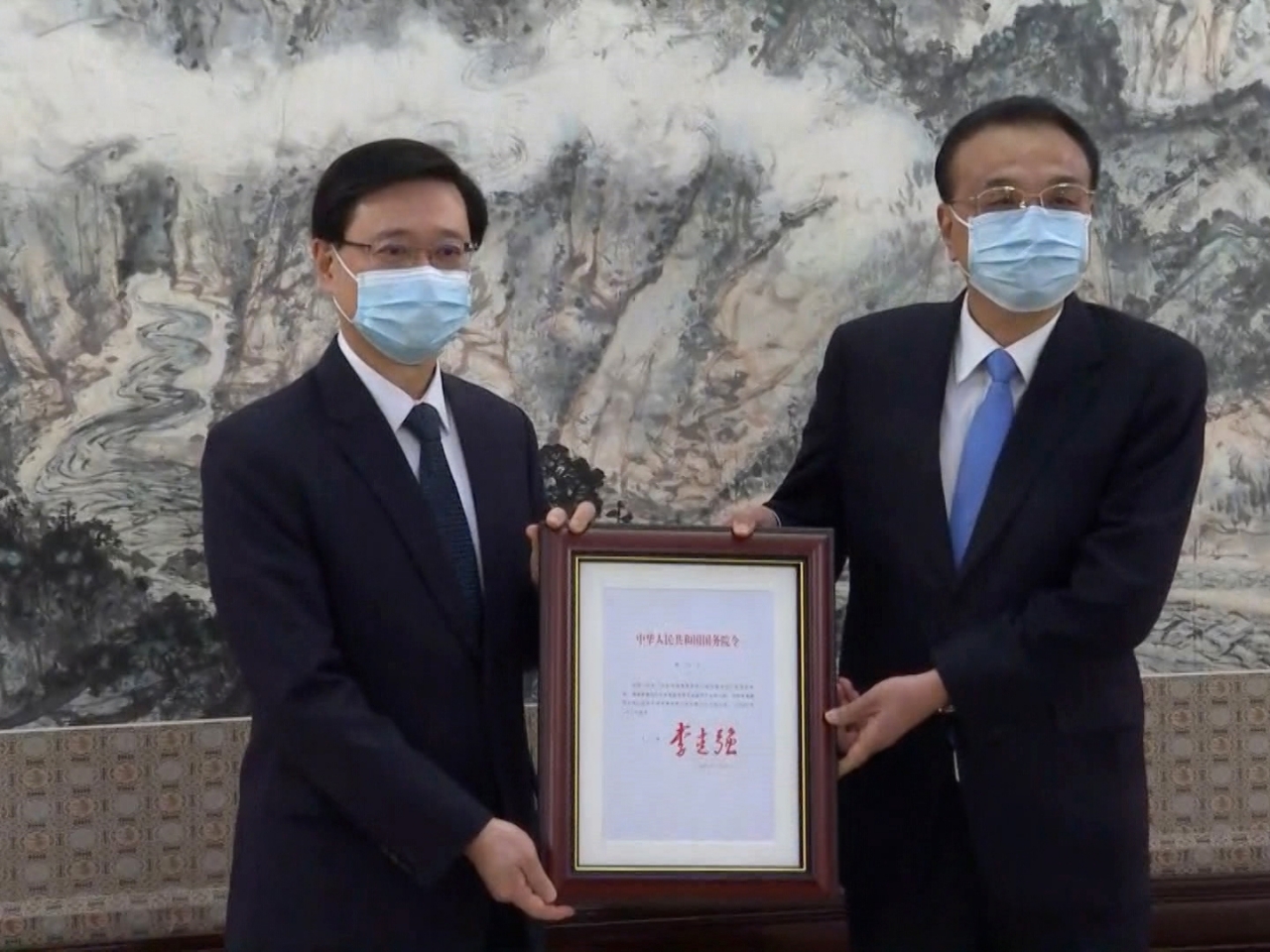 國務院總理李克強今日(30日)在中南海紫光閣向李家超頒發國務院令,任命李家超為香港特區第六任行政長官。李克強發言時表示,中央政府繼續全面準確貫徹「一國兩制」、「港人治港」、高度自治方針,並落實好中央對特區全面管治權和「愛國者治港」,全力支持新任行政長官及特區政府依法施政,發展經濟,改善民生,結合國家所需、發揮香港所長,讓香港更好融入國家發展大局,以保持香港的長期繁榮穩定。